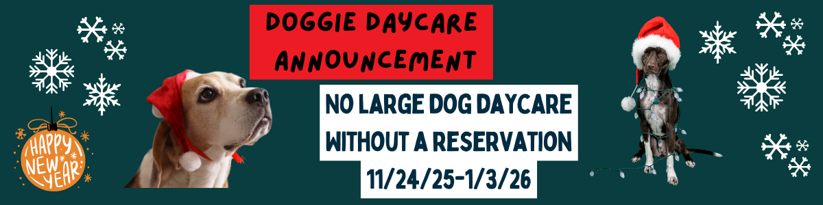 During busy seasons (holidays and summer months) boarding guests take priority to daycare guests. During this time daycare is restricted and must be approved the morning of—Restricted times will be announced on our homepage and on Facebook.